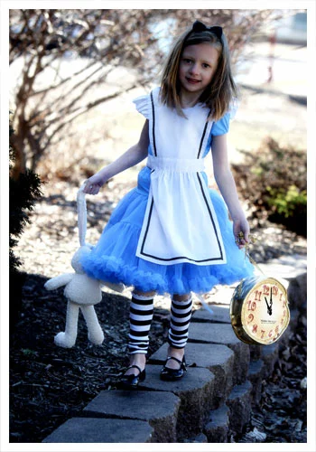 TutuApronLeotardHeadbandShe’ll be the most whimsical-looking Alice around with this child tutu Alice costume! This exclusive costume includes a light blue leotard with short sleeves that is made from a stretchable polyester and spandex blend. The light blue tutu skirt has several layers of ruffled tulle and a comfortable elastic waist. Over these pieces slip on the white apron for a classic Alice look. The apron has ruffles on the shoulders, black ribbon trim along the edges and ties in the back to secure it. Top off the entire outfit with the included black headband with a black bow attached. She’ll be the cutest little girl to ever fall down a rabbit hole in this adorable tutu Alice costume!