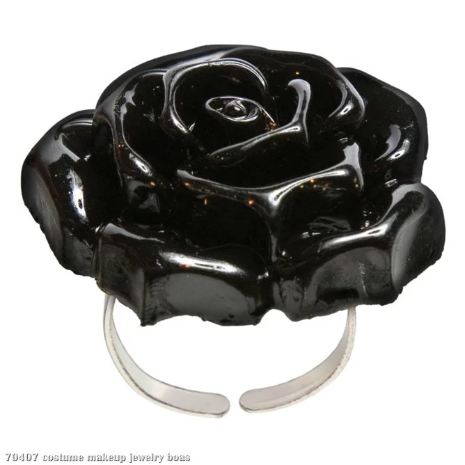 Add a beautiful, but edgy, touch to any ensemble with this ring. Perfect for dark brides, vampires, witches and so much more! Includes one black plastic rose ring with an adjustable metal band.
