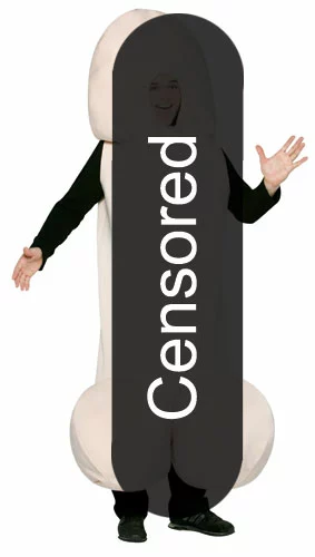 Polyfoam Penis CostumeLook like a giant you-know-what at your next adults only costume party in our Happy Halloweenie costume! The flesh colored poly foam jumpsuit is shaped like a giant penis. The top has a nude colored hood on the inside with a hole in the top so that you can stuff the top for a full appearance. There is a large opening for the face and two openings at the shoulders for your arms. The bottom is open to provide plenty of clearance for easy movement. And there will be no doubt that you’ve got a pair with the two large balls attached at the bottom. These balls have openings on the inside so you can stuff them as well. You’ll have everyone roaring with laughter in our adult Happy Halloweenie costume!