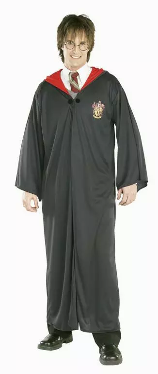 “Harry Potter has come to Hogwarts!”Costume includes:A basic Black wizard robe with Griffindor Crest iron on, front clasp, and attached hood with Burgundy lining.Available size: