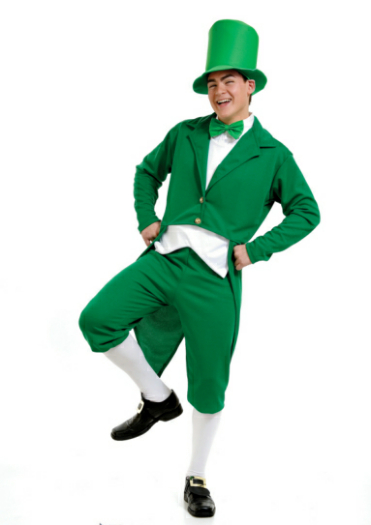 The Leprechaun Adult costume includes a green jacket with tuxedo tails, green pants, green top hat and a white sleeveless top with an attached bow tie. Whether you’ll be protecting your pot of gold or giving a wee bit of luck to a lucky passer-by, you’ll look magically fantastic in this costume!