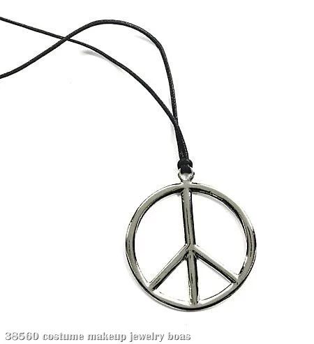 Show your sign and represent hippies everywhere with this far out necklace! Totally ready for a flashback to the 60s, this awesome piece of neckwear is ready to add some peace to your look! Includes a silver peace sign attached to a black rope-like chain.