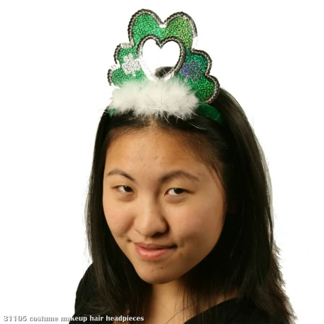 This green hearted shamrock headband with glittery green background and 2 silver shamrocks with silver around the edges will add festivity to any party!