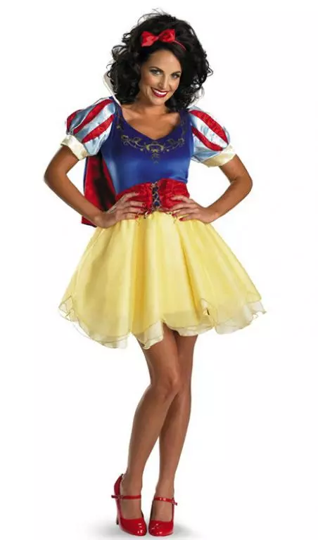 Costume includes:Dress with attached petticoat,detachable cape,lace-up corset,bow headband.